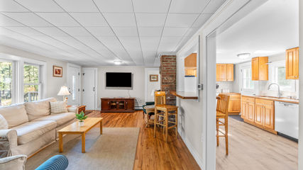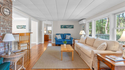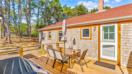 Tucked away in Wellfleet's sought-after Indian Neck area, this private 3-bed, 3.5-bath haven is a stone's throw from beloved bay beaches and a short jaunt to Wellfleet Center. Set on a sprawling .88-acre lot, the heart of the property is the main house that’s rooted in 1950s charm (fully renovated in 2015 with new electric, plumbing, windows, roof, and more) and further enhanced in 2025 with a brand-new high-efficiency : AC mini-split system and an expansive new back deck added in June 2025.